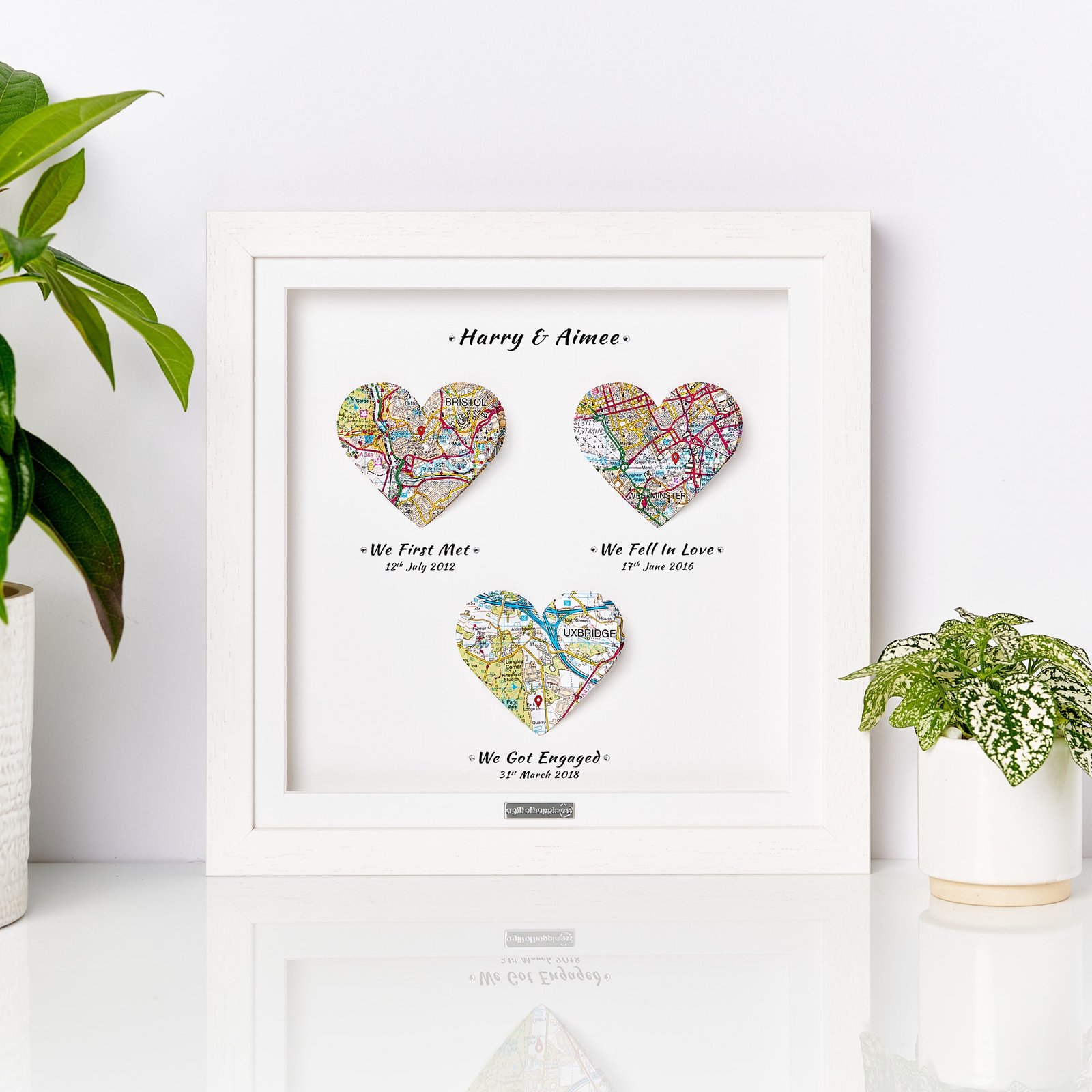 Celebrate your journey of love with our Heart Maps Anniversary Gift, a thoughtful and sentimental way to honor the special moments in your relationship. This unique gift features three heart-shaped maps, each highlighting a significant location in your love story – from where you first met, to your memorable first date, and the magical spot of your first kiss. Whether you’re looking for a meaningful anniversary gift for him or her, this personalized keepsake will remind you both of the milestones that have shaped your bond and create a lasting memory of your love story.