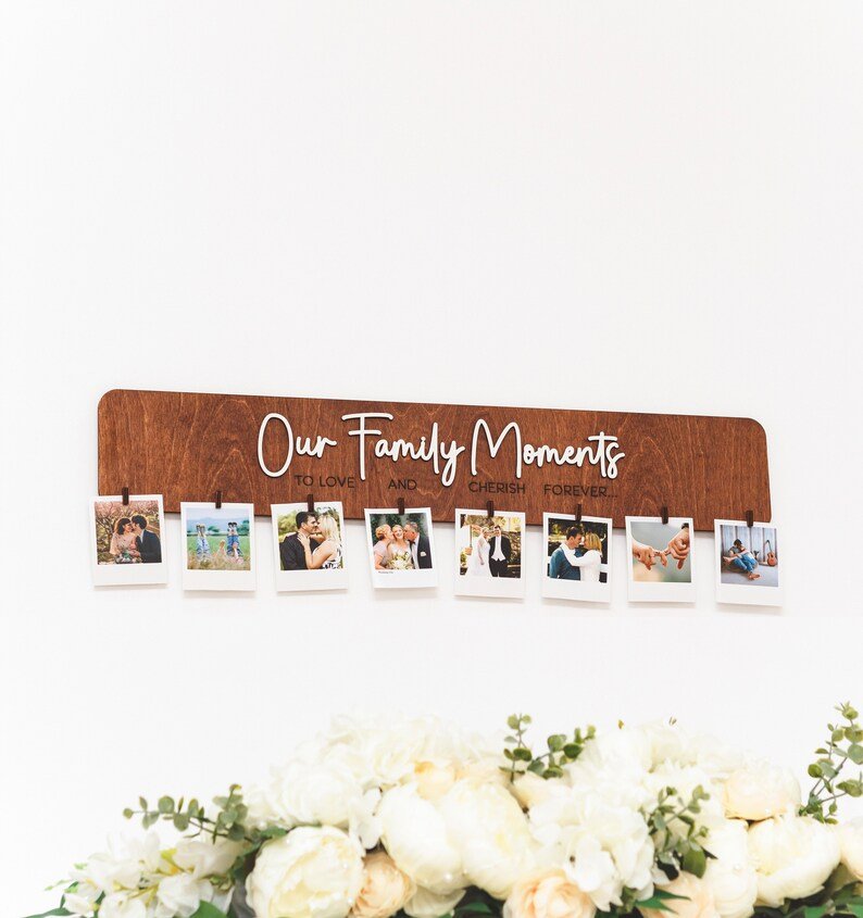 Commemorate your love story with our Wooden Family Sign Wall Decor Photo Display – the perfect anniversary gift and Valentine’s Day surprise for couples to showcase their beautiful moments together.